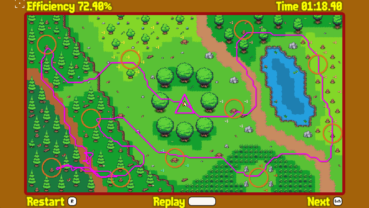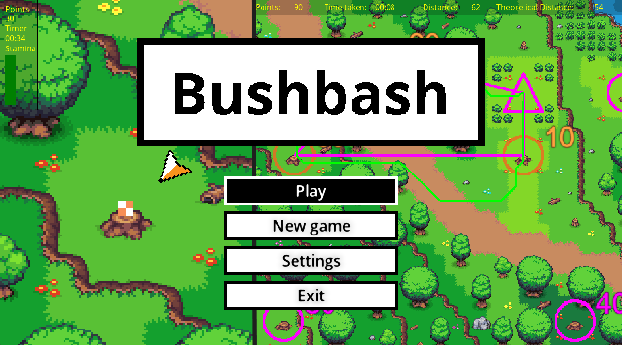 Bushbash is an prototype of a navigation-based game where your goal is to plot a path, navigate around the world using your map, and find all the stars and make it home in time.